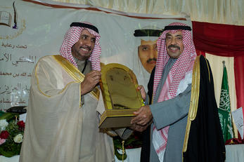 نيابةً عن صاحب السمو الملكي الأمير أحمد بن عبدالعزيز آل سعود ، رعى صاحب السمو الملكي الأمير نايف بن أحمد بن عبدالعزيز الحفل الذي أقامه الأستاذ عبدالله بن محمد أبابطين بروضة سدير بمناسبة تكريم الأستاذ الأديب عبدالعزيز سعود البابطين بمناسبة مرور ٢٥ عاماً على إنشاء مؤسسة جائزة عبدالعزيز سعود البابطين للإبداع الشعري